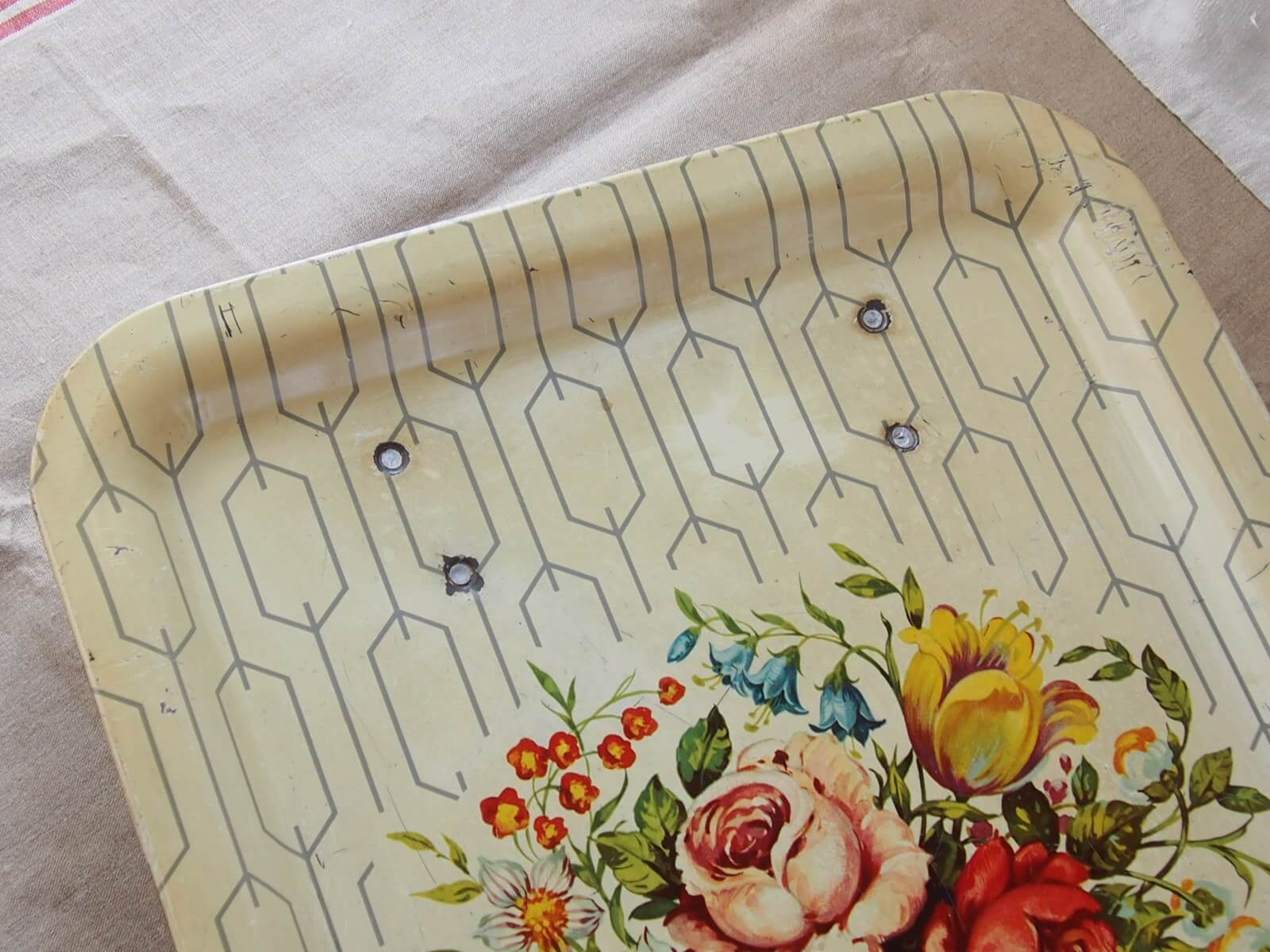 美しい花柄が特徴で、お部屋にレトロな魅力をプラスしてくれます。装飾性と機能性を兼ね備えており、膝上トレイとしてや飾り台としてなど、ご自宅のユニークなアクセントとして最適です。使用しない時には畳んで収納でき、実用性も抜群です。年代からくる汚れやキズ・変色・シミ・軽い凹凸などは見られます。
