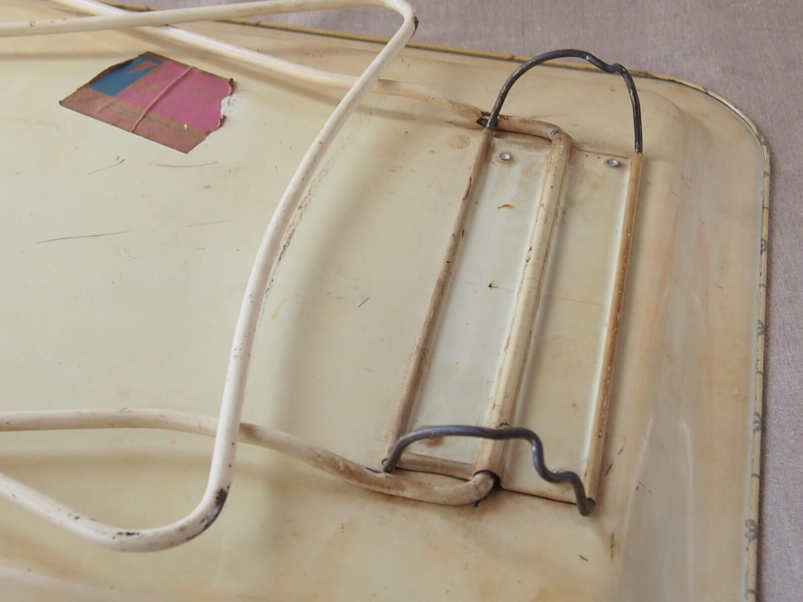 推定1950年代・イギリス・Worecester Ware。折りたたみ脚付きのこの素敵なメタルトレイ。