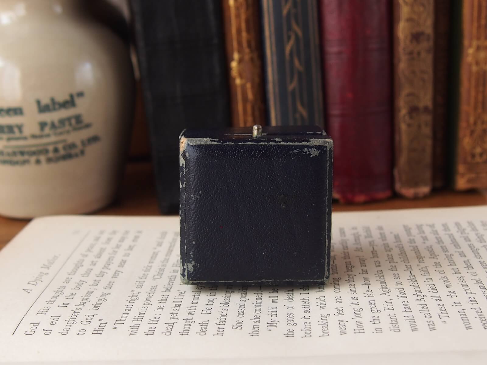 推定1930年代頃。イギリスで出会った古いジュエリーボックス。開いた時に見えるお店のロゴがとっても素敵!また色合いや質感など、時を経たアンティークの良い雰囲気がでています。蓋の開閉も問題ありません。指輪を収めるケースにこだわってみるのも素敵です♪ ディスプレイやフォトスタイリングのアイテムとしても最適です。年代からくる汚れや変色・擦れ・キズなどは見られますが、大きなダメージはありません。