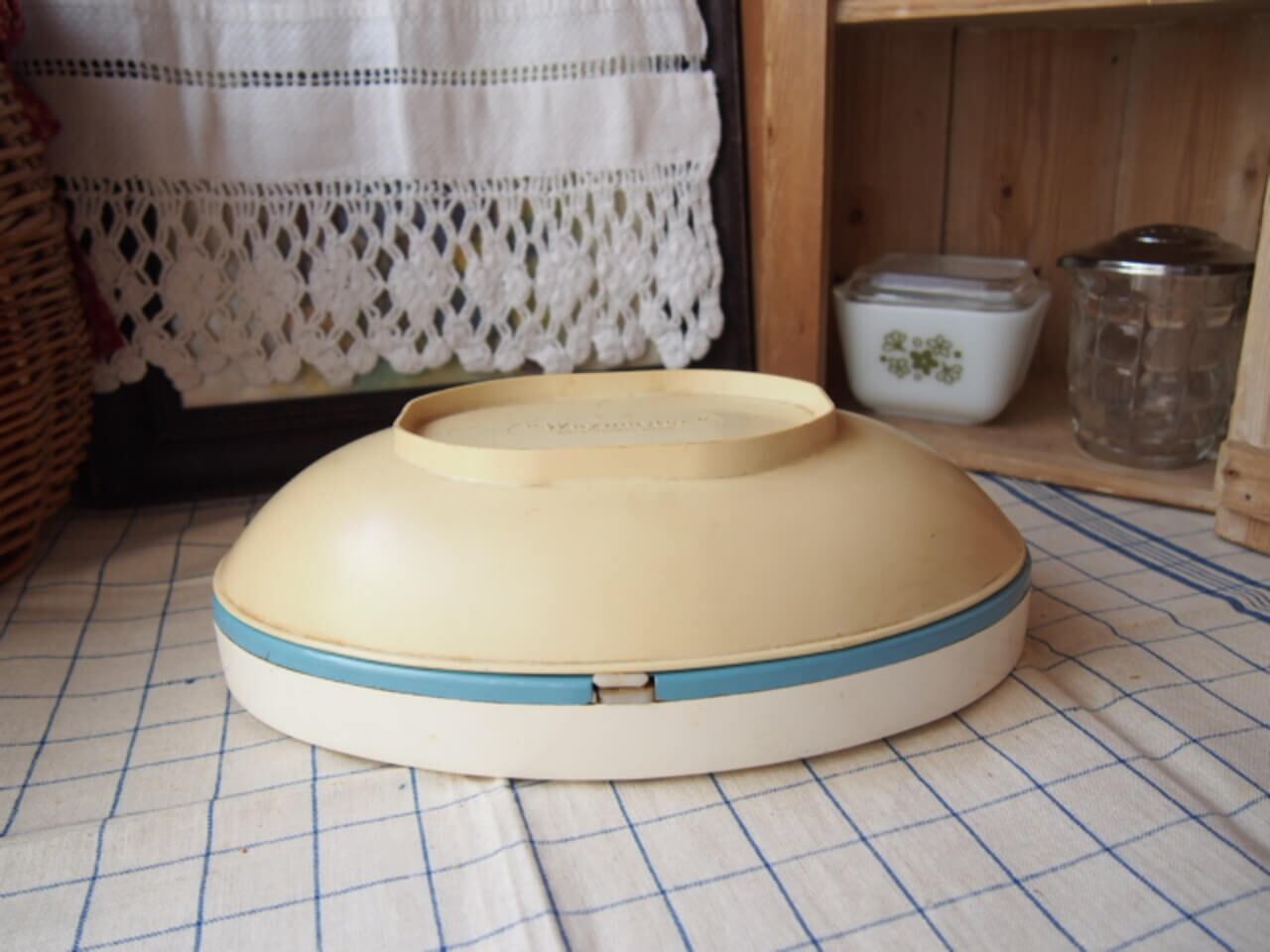 推定1950~60年代・イギリス・ウェイマスター社製。水色のボディがとっても可愛らしいキッチンスケール。キッチンのアクセントになってくれそうです。年代からくる汚れや細かいキズ、小さなペンキ跡などは見られますが、全体的には良い状態です。調節ねじも動き、動作にも問題ありません。